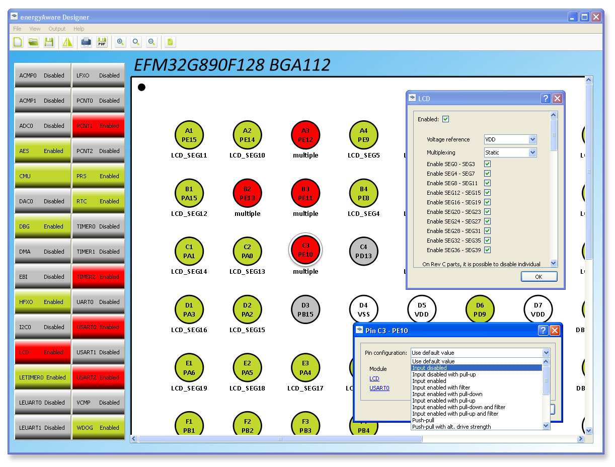 Energy Micro公司的CTO Øyvind Janbu說:“長(zhǎng)久以來,工程師們已經(jīng)浪費(fèi)了很多時(shí)間試圖破譯復(fù)雜的外設(shè)地圖,以確定引腳輸出的沖突所在。 EnergyAware Designer 克服了這個(gè)困難,簡(jiǎn)化了MCU配置和文件,并讓工程師們專注于開發(fā)應(yīng)用程序。”