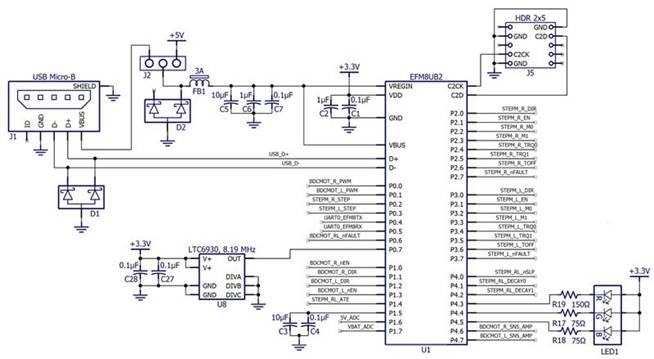 您可能已經在框圖中注意到 EFM8 似乎由 DC/DC 轉換器的 5 V 供電。但實際上,EFM8 有一個集成的線性穩壓器,可接受 5 V 輸入并生成 3.3 V 電壓供自身使用和外部電路使用。J2 是一個三針接頭,允許用戶通過 DC/DC 轉換器或 USB 連接提供的 5 V 電壓為 EFM8 供電。 詳細閱讀>>